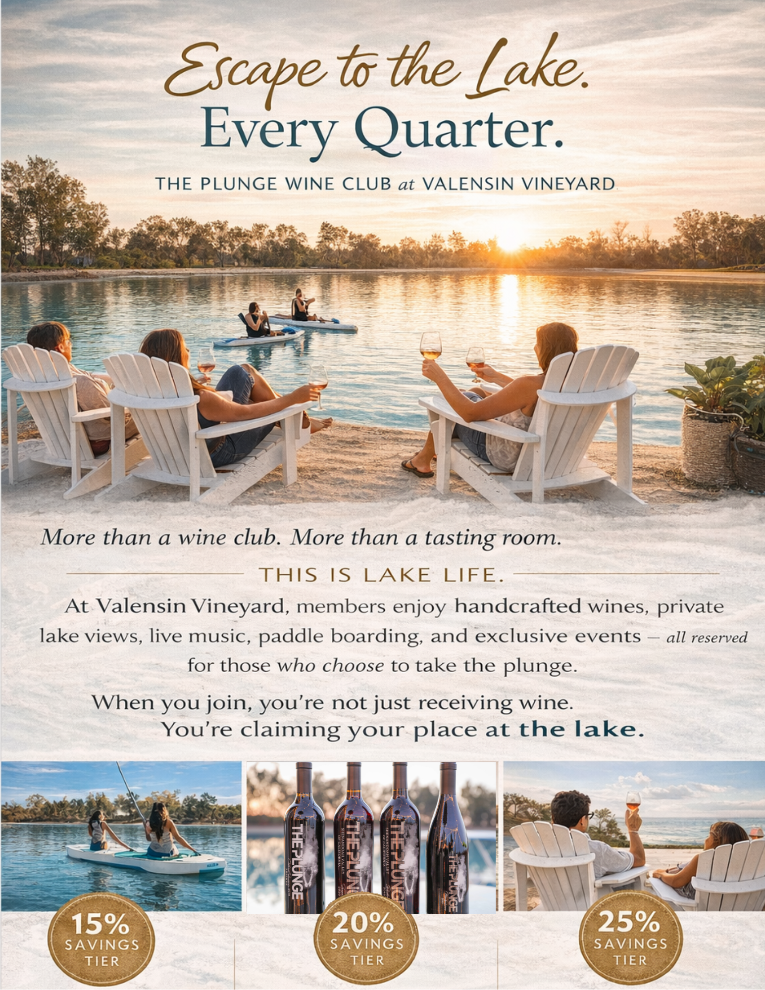 The Paddle Plunge Wine Club is a gentle start to the Valensin Wine Club. Receive 4 bottles quarterly from our amazing wine selection, you choose the wines and receive your favorites!